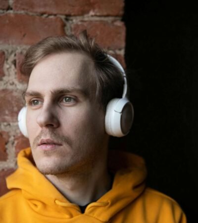 A person stands with their back turned, wearing dark underwear. The lighting creates dramatic shadows, accentuating the body's curves and contours, with a hand seen in the frame gesturing in a relaxed manner.